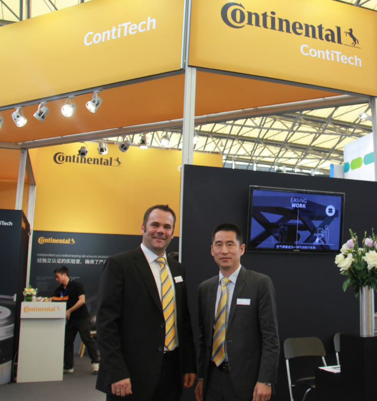 康迪泰克空氣彈簧系統業務單元區總經理譚貝克(左)和康迪泰克空氣彈簧系統業務單元區銷售市場總監郝建華(右)合影