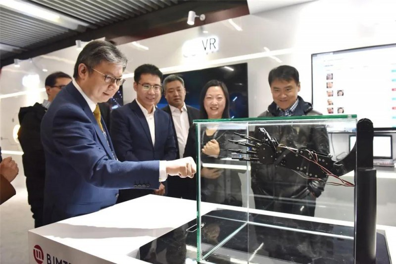 邵信明(左一)在4號線首個5G試點車站,體驗互動裝置