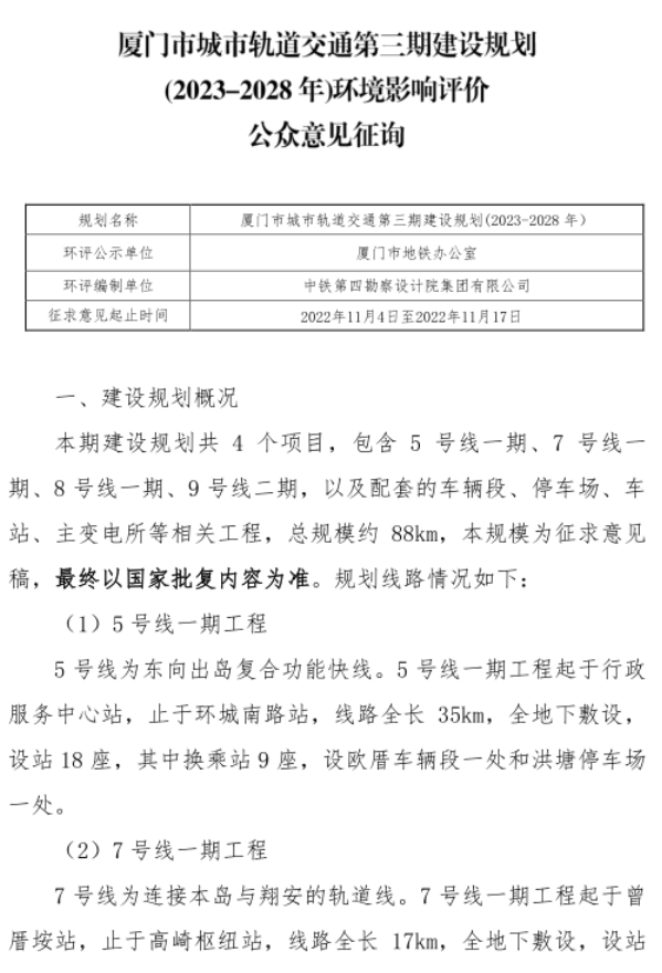 附件: 廈門市城市軌道交通第三期建設規劃環境影響評價公眾意.docx