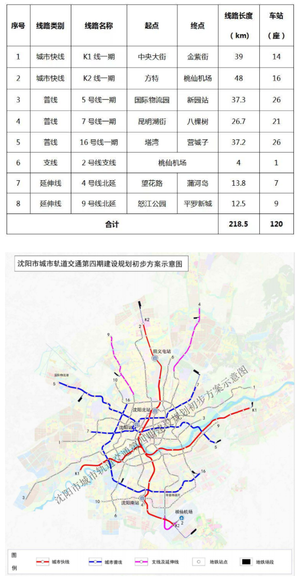 規(guī)劃概況:《沈陽市城市軌道交通第四期建設(shè)規(guī)劃(2025-2030年)》包含:K1快線一期、K2快線一期、5號(hào)線一期、7號(hào)線一期、16號(hào)線一期、2號(hào)線支線、4號(hào)線北延、9號(hào)線北延共8個(gè)項(xiàng)目,總規(guī)模約218.5公里,包含車站120座、主變電所12座、車輛基地10座和控制中心1座,總投資約1364億元。(目前方案正在研究編制,具體線路和規(guī)模以國(guó)家主管部門最終審批為準(zhǔn))