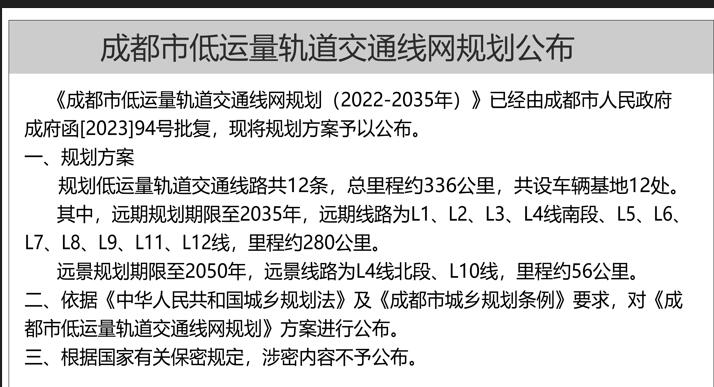 11月21日,成都市規(guī)劃和自然資源局官網(wǎng)正式公布《成都市低運(yùn)量軌道交通線網(wǎng)規(guī)劃(2022-2035年)》。