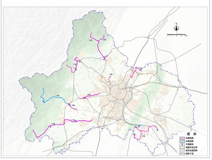 根據(jù)《規(guī)劃》,成都將建設(shè)低運(yùn)量軌道交通線路12條,總里程約336公里,共設(shè)車輛基地12處。其中,遠(yuǎn)期規(guī)劃期限至2035年,遠(yuǎn)期線路為L(zhǎng)1、L2、L3、L4線南段、L5、L6、 L7、L8、L9、L11、L12線,里程約280公里。遠(yuǎn)景規(guī)劃期限至2050年,遠(yuǎn)景線路為L(zhǎng)4線北段、L10線,里程約56公里。
