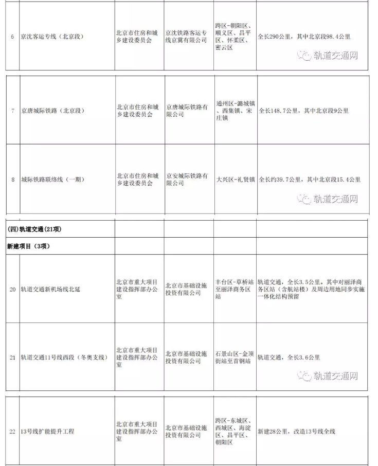 其中,在基礎設施方面,計劃完成投資約538億元。軌交領域將重點建設7項鐵路項目和21項城市軌道交通項目。北京市2019年重點工程計劃(軌交項目)如下: