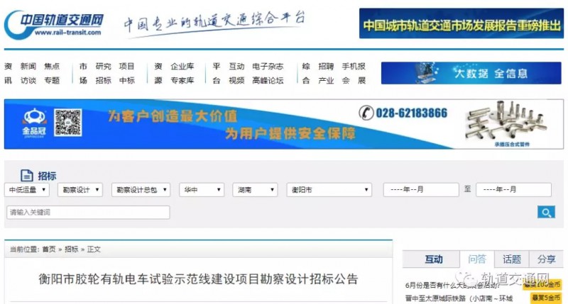 衡陽市膠輪有軌電車試驗示范線建設項目勘察設計招標公告