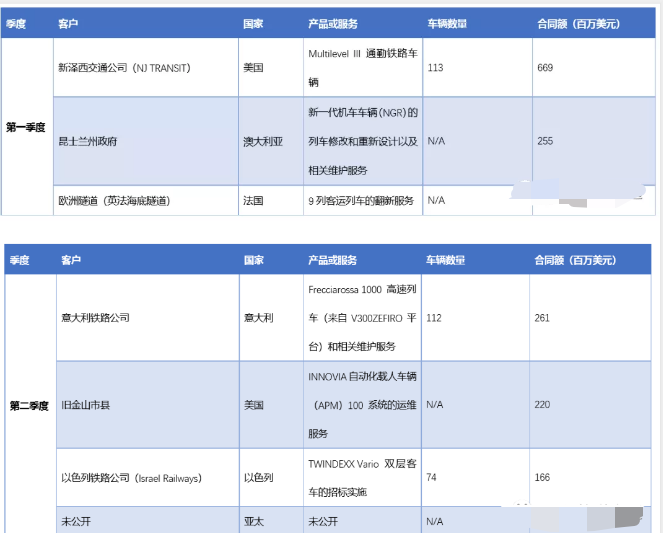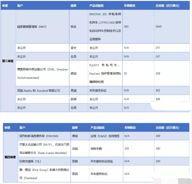 截至2019財(cái)年12月31日,龐巴迪運(yùn)輸本年度簽訂的重要訂單明細(xì)如下: