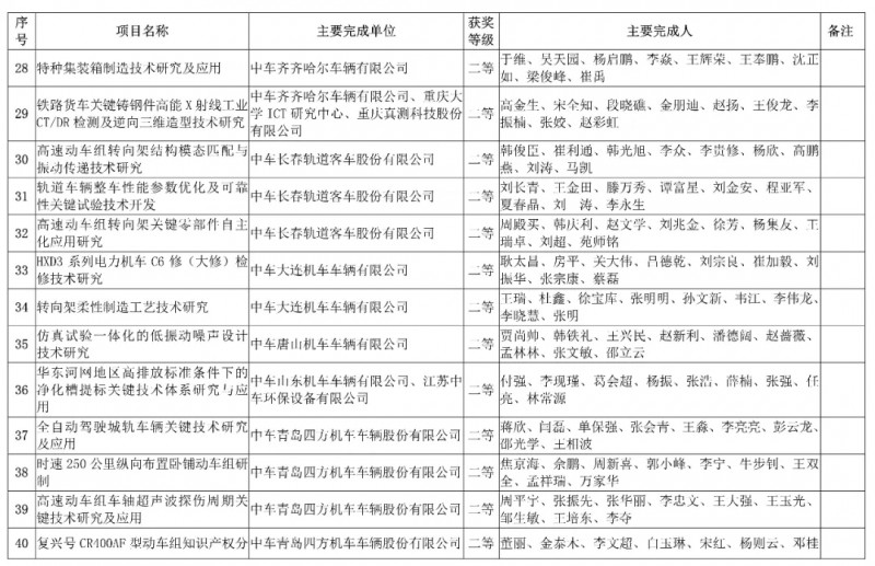 主要完成單位:中車青島四方機車車輛股份有限公司、中國國家鐵路集團有限公司