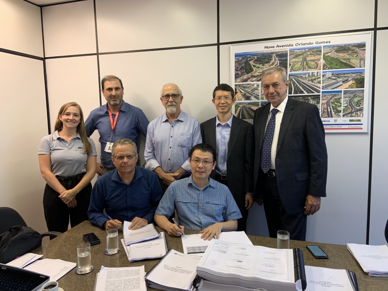 在巴伊亞州民政部長Bruno Dauster(后排中)的見證下,比亞迪巴西分公司總經理李鐵與巴伊亞州交通運營公司CTB主席José Eduardo Ribeiro Copello共同簽署整體設計方案合約