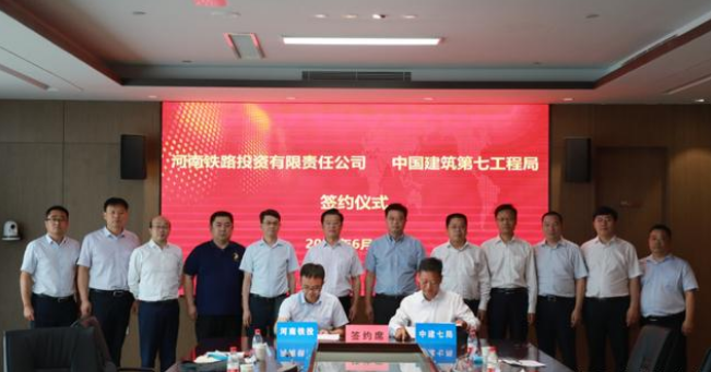 6月14日下午,中建七局與河南鐵路投資有限責任公司(以下簡稱河南鐵投)舉行戰略框架合作協議簽約儀式,致力于攜手共進為河南鐵路建設做出更大貢獻。河南鐵投黨委書記、董事長悅國勇,黨委委員、總會計師王太鋼,中建七局黨委書記、董事長方勝利,局副總經理、一公司黨委書記、董事長程文彬等出席簽約儀式。
