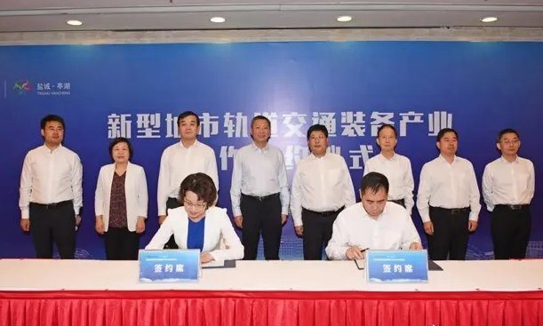 7月3日,鹽城市與中車株洲電力機(jī)車有限公司簽約,合作共建新型城市軌道交通裝備產(chǎn)業(yè)項(xiàng)目。