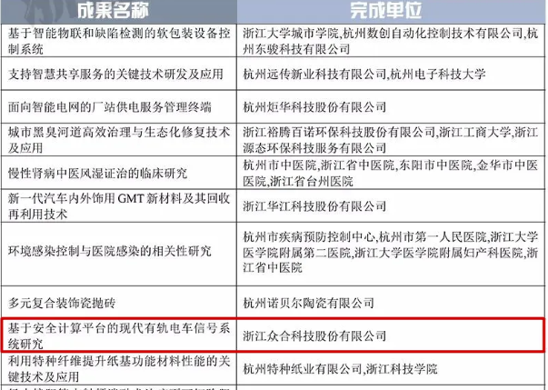 眾合科技的“基于安全計算機平臺的現代有軌電車信號系統研究”獲2019年度浙江省科學技術進步獎三等獎。