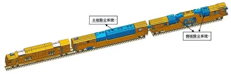 鐵路道床積塵長期困擾重載鐵路運(yùn)輸,影響道床彈性、隧道排水、軌道電路特性、電氣設(shè)備壽命,嚴(yán)重影響著鐵路設(shè)備維護(hù)及運(yùn)輸安全。TX-100Ⅱ鐵路道床吸污車是為運(yùn)煤鐵路專線清理隧道內(nèi)沉積煤粉而研發(fā)的一款大型養(yǎng)路機(jī)械,由朔黃鐵路公司聯(lián)合鐵建高新裝備股份有限公司、鐵道科學(xué)研究院集團(tuán)有限公司、中煤科工集團(tuán)重慶研究院有限公司等多家裝備制造及科研機(jī)構(gòu)進(jìn)行協(xié)同攻關(guān),成功研發(fā)出具有自主知識產(chǎn)權(quán)的道床吸污裝備。在研發(fā)過程中,煤科重慶研究院負(fù)責(zé)該裝備核心部分——吸塵除塵系統(tǒng)、煤塵爆炸防護(hù)系統(tǒng)、作業(yè)環(huán)境監(jiān)測報(bào)警系統(tǒng)等的研究、設(shè)計(jì)和制造。