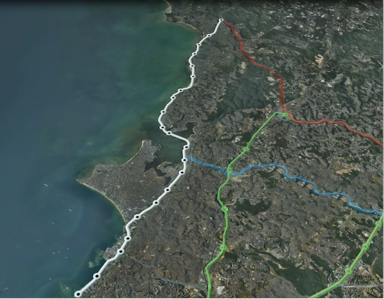 薩爾瓦多云軌線路(白色線條)將與其它軌道交通線路共同打造軌道交通網(wǎng)