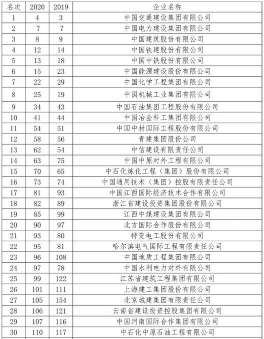2020年度ENR“全球最大250家國際承包商”上榜企業(yè)名單如下: