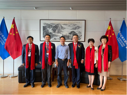 儀式開始前深圳交易所黨委書記、理事長王建軍同志親切會(huì)見王稼瓊校長一行,競業(yè)達(dá)董事長錢瑞陪同參加會(huì)見。
