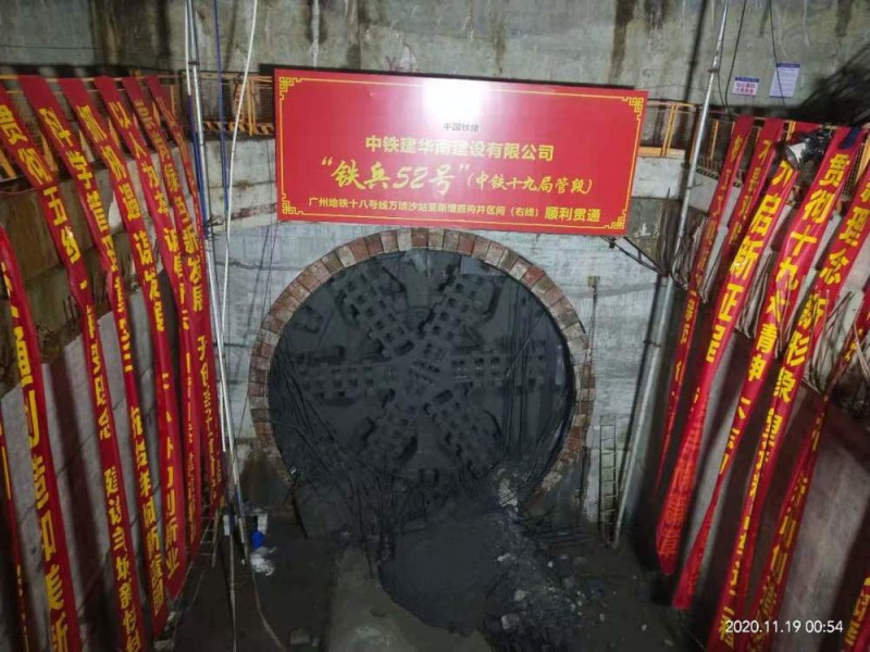 2020年11月19日凌晨,廣州地鐵十八號線一分部三工區萬頃沙站-盾構井區間右線盾構機安全、順利、精準出洞,標志著廣州市軌道交通十八號線工程監理1標項目部10條隧道全部完成貫通。