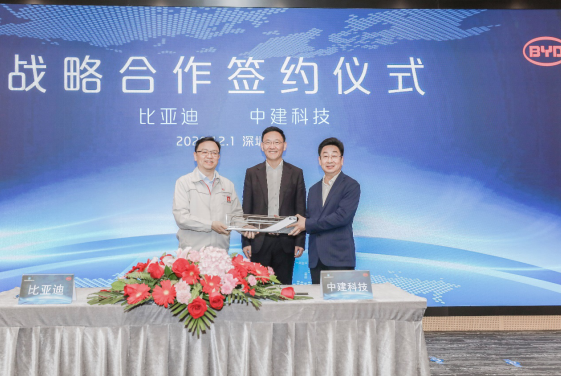 2020年12月1日,比亞迪股份有限公司(簡稱“比亞迪”)與中建科技集團有限公司(簡稱“中建科技”)在深圳坪山亞迪全球總部簽署了戰略合作協議。坪山區委副書記、人民政府區長李勇,區工業和信息化局局長李萌,區住房建設局局長劉守明,比亞迪集團董事長兼總裁王傳福,比亞迪通信信號有限公司總經理劉偉華,中建科技總經理張仲華,中建科技深圳分公司總經理張紹棟等出席了本次會議。