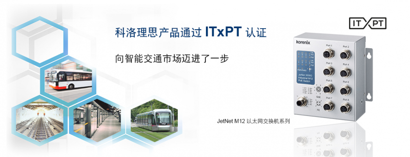 科洛理思科技有限公司隸屬于北爾集團(tuán)。我們很高興地宣布:非網(wǎng)管型以太網(wǎng)交換機(jī)已獲得ITxPT認(rèn)證。 ITxPT標(biāo)準(zhǔn)認(rèn)證協(xié)會(huì)位于比利時(shí),ITxPT協(xié)議向公共交通供應(yīng)商和制造商開(kāi)放,是用于公共交通的、以開(kāi)發(fā)標(biāo)準(zhǔn)化、可相互操作的車(chē)載系統(tǒng)和后臺(tái)IT系統(tǒng)。 科洛理思非網(wǎng)管型以太網(wǎng)交換機(jī):JetNet 3808G-M12, JetNet 3908G-M12, JetNet 3508-LVDC, JetNet 3508G-LVDC3 已通過(guò)了ITxPT S01 v2.1.0細(xì)則的測(cè)試和驗(yàn)證。