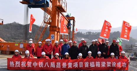 1月16日11時08分,隨著昌景黃鐵路左線京村大橋第一榀預制簡支箱梁穩穩落定,標志著中鐵八局二公司參建的新建昌景黃鐵路CHZQ-2標首孔箱梁順利架設完成。