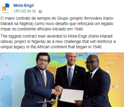尼日利亞交通部長(zhǎng)羅蒂米·阿瑪奇在推特上寫道:“我們簽署了卡諾-馬拉迪和卡諾-杜塞鐵路項(xiàng)目的開工合同文件。作為協(xié)議的一部分,Mota-Engil也將建造一所大學(xué)。”