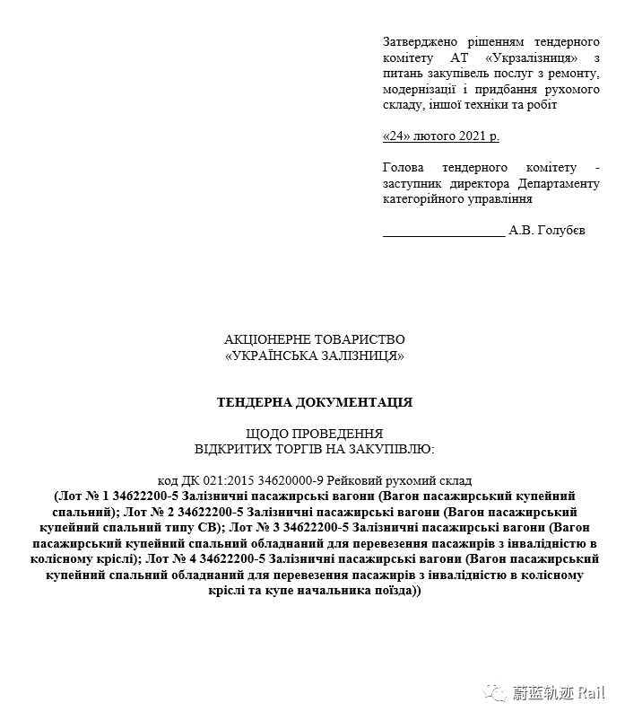 當地時間2月25日,國家鐵路公司正式發布招標信息,共計采購100輛臥鋪列車,共分4個分項,項目總價值為30.44億烏克蘭格里夫納(約1.09億美元)。