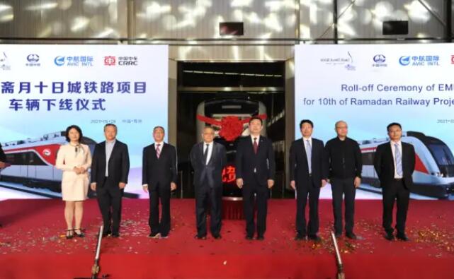 5月28日,中車四方股份公司為埃及齋月十日城鐵路項目研制的首列市域電動車組下線,這是我國出口埃及的首列電動車組。