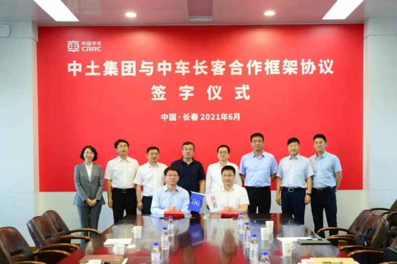 2021年6月23日下午,中土集團董事長趙佃龍、副總經理朱小剛、副總經理劉東一行團組7人來到中車長客股份公司進行訪問。中車長客總經理王鋒、副總經理婁彥君、總經理助理馬列等領導接待了中土集團團組一行,雙方就當前合作情況及未來合作愿景進行深入交談,并簽署合作框架協議。