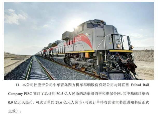 北京時(shí)間6月28日,中車發(fā)布公告,正式公布2021年3至6月期間簽訂的若干項(xiàng)合同,合計(jì)金額總約435.5億元人民幣。其中,引人注目的是中車四方與阿聯(lián)酋伊提哈德鐵路公司簽訂了總計(jì)約30.5億人民幣的動(dòng)車組銷售和維保合同。其中基礎(chǔ)訂單約0.9億元人民幣,可選訂單約29.6億元人民幣(可選訂單待收到業(yè)主書面通知書后正式生效)。