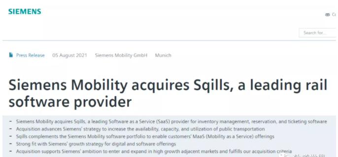 西門子5.5億歐元收購鐵路軟件公司Sqills