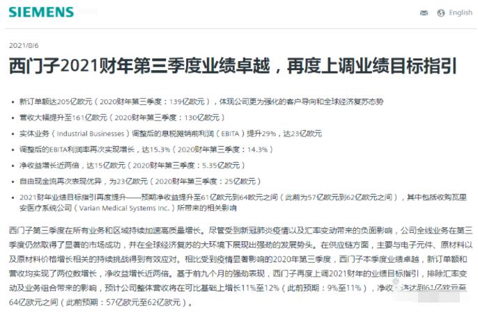 西門子第三季度在所有業(yè)務(wù)和區(qū)域持續(xù)加速高質(zhì)量增長