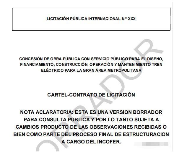 2021年5月25日,哥斯達黎加國家鐵路局公布哥斯達黎加電動車組項目的招標草稿,以便有興趣參與項目招標的公司以及哥斯達黎加公眾團體提出修改意見。