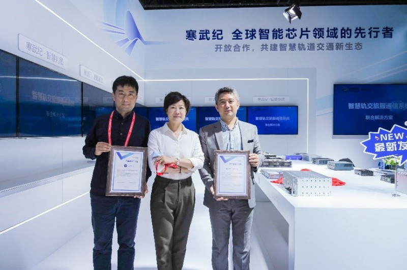 展覽首日,寒武紀攜手云知聲、妙微科技首發基于寒武紀MLU220-SOM邊緣端人工智能模組的“智慧旅服通信解決方案”,為列車運營、乘客服務等場景的智慧化升級提供了系統級方案。