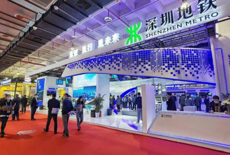 展會上,深圳地鐵展區采用300°動態投影設計,整體造型設計猶如向前飛馳的地鐵列車。同時,圍繞“灣區一張網”“數字化轉型”“站城一體化”“精益建設”“卓越運營”五個板塊,全方位展現了深圳地鐵在智慧賦能城軌交通高質量發展的應用成果,展示了云計算、大數據、綠色能源等技術在軌道交通建設、運營等細分領域的創新應用。