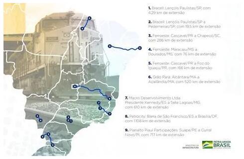 巴西聯邦政府于12月9日與六個集團簽署了合同,授權他們推進九個鐵路建設項目,這些項目將利用500億雷亞爾的私人資金為國家網絡增加約3507公里的鐵路路線。