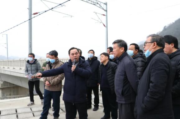 中鐵十一局集團四公司消息:2月16日下午,國家鐵路集團工管中心主任湯曉光一行到鄭萬高鐵高家坪隧道調研湖北段的開通準備工作及剩余工程進展。武九客專湖北公司黨委書記、總經理王志堅,武漢鐵路局集團公司副總經理王文君,集團公司副總經理王卓華,公司黨委書記張忠義、副總經理黎建華、副總經理左小偉等陪同。