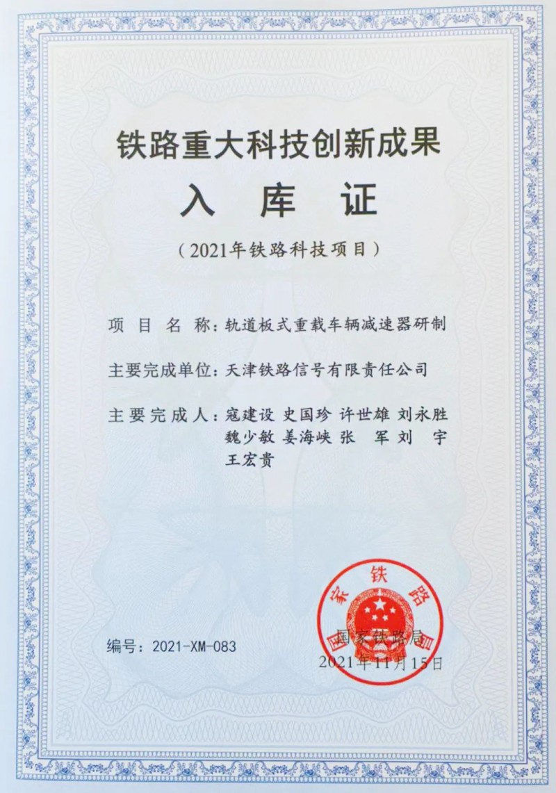 《軌道板式重載車輛減速器研制》項目成果有8處技術創新點,取得了2項發明專利,5項實用新型專利。該產品主要用于鐵路貨運駝峰編組站,可滿足國內重載27t軸重貨車溜放需求。本次成果的取得,是國家鐵路局對軌道板式重載車輛減速器產品的認可,也是對西安工業集團科技創新等方面工作的充分肯定,激勵企業在科技創新方面更上一層樓。