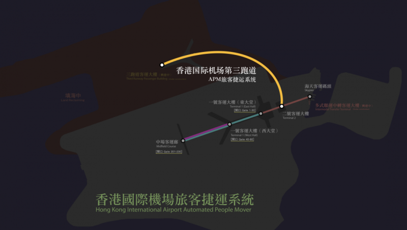 PATS于2017年中標香港國際機場“3601三跑道新捷運線工程(TRC線)”項目。該項目是PATS第一個境外交鑰匙總包工程,采用APM 300全自動旅客捷運系統。初近遠期均采用6 輛編組運營模式。
