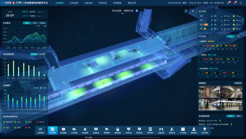 軌道交通進入快速發展期,新線路建設對高效管理和有序規劃線網資源有著顯著的需求。作為長沙首條智慧地鐵,6號線首次引入以佳都科技華佳Mos為底座的智慧地鐵管控平臺,基于數字孿生技術,構建了完整的真實的數字平行世界,將車站數據還原到數字三維空間,同時展示客流量、車站熱點客流密度、能耗、列車、站內設備的實時狀態,實現了車站和線路的運行狀態可視化、運營管理智能化。