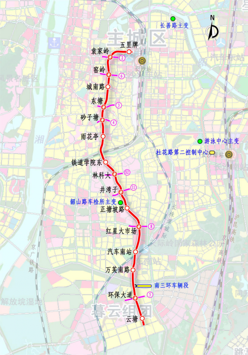 起于天心區(qū)云塘站,沿匯金路、韶山路及八一路敷設(shè),止于五里牌站,線路全長(zhǎng)16.84公里,設(shè)站16座(其中換乘站9座),沿線工程地質(zhì)條件及環(huán)境較為復(fù)雜,征地拆遷、交通疏解、管線遷改、綠化遷移難度大,先后穿越長(zhǎng)株潭城際鐵路、京廣鐵路及長(zhǎng)沙地鐵2、3、4、6號(hào)線,項(xiàng)目總投資為164億元,設(shè)計(jì)為長(zhǎng)沙首條全自動(dòng)駕駛線路。