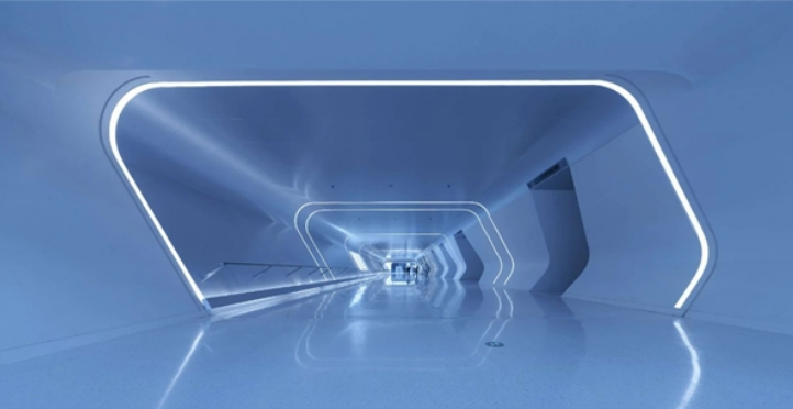 地下通道的照明別具匠心,通過空間中的漫射光為旅客增添了舒適感,同時也減弱了地下空間和地面自然光環(huán)境的割裂。此外,南北地下軸線、安檢出口、站房外通道、停車場、隧道、售票廳等處的照明,處處可見指示性線條燈光,方便旅客迅速找到目的區(qū)域。