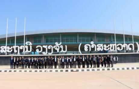 泰國和老撾官員在 Khamsavath 站外合影