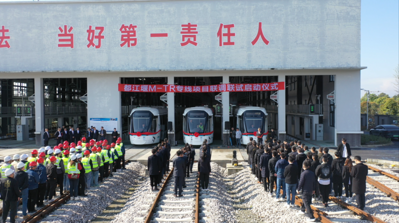 2023年3月29日,川發(fā)軌道公司組織都江堰M(jìn)-TR旅游客運(yùn)專線運(yùn)營單位及所有參建單位在中興停車場(chǎng)舉行聯(lián)調(diào)聯(lián)試啟動(dòng)儀式,標(biāo)志著M-TR項(xiàng)目向著開通運(yùn)營的目標(biāo)又邁出了重要一步。