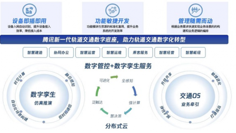 騰訊服務(wù)軌道交通建設(shè)背后的技術(shù)支撐,展開來講,主要在于以數(shù)字化、網(wǎng)絡(luò)化和智能化為牽引,以數(shù)據(jù)為關(guān)鍵要素和核心驅(qū)動,依托在云計(jì)算、大數(shù)據(jù)、AI等核心技術(shù)領(lǐng)域的深厚沉淀,構(gòu)建了一整套完善的數(shù)字底座能力體系,打造了“實(shí)時孿生+交通OS”雙輪驅(qū)動的數(shù)字底座。