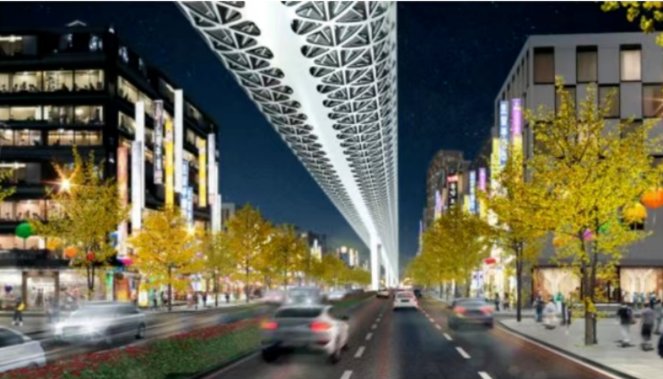 在韓國,輕軌高架橋一般采用40米跨徑,但這帶來密集的橋墩占用路面,有較多民眾呼聲要求采用地下隧道,但這又會增加項目造價。為此,在2018年韓國土地基建及交通部(MOLIT)開展了一項課題,稱為“天空導(dǎo)軌”,旨在研究采用更低的橋墩、更大的跨徑,從而在輕軌高架橋下營造一種開闊的空間。