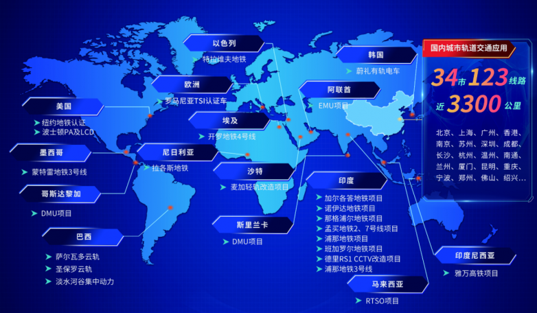 在國際市場,華啟智能業(yè)務(wù)累計拓展至境外15個國家和地區(qū)26條線路,接連中標(biāo)了印度加爾各答、孟買、浦那、蘇拉特等6個城市9條線路,以及墨西哥地鐵、拉各斯地鐵、沙特麥加輕軌改造等共計1555輛車的車載PIS項目。另外,華啟智能還是CAF、Alstom等國際主流車廠的合格供應(yīng)商。