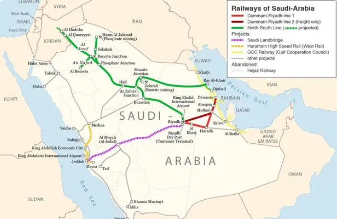 沙特大陸橋項目是沙特計劃建設的最大基礎設施項目之一,由沙特鐵路公司實施。該項目包括六條線路: