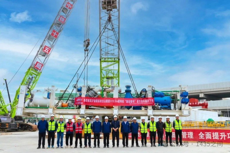 寶山隧道是全國首座三線高鐵交叉施工隧道和全國首座全程淺埋超大直徑泥水盾構隧道,隧道全長3030米,其中盾構段1948米,明挖段1082米?!靶抡鞒烫枴贝笾睆侥嗨胶舛軜嫏C是為寶山隧道量身定制的,整機總長101米,最大開挖直徑為13.5米,總重2634噸,裝機總功率達6500千瓦,配備目前國內首次應用于高鐵隧道建設的智能化設備——“智能化徑向注漿一體化設備”,盾構機總裝達到國內先進水平。