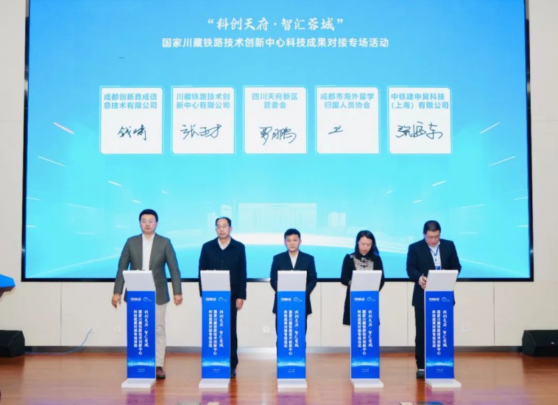 現(xiàn)場舉行川藏鐵路技術(shù)創(chuàng)新中心科技成果轉(zhuǎn)化聯(lián)合體共建儀式,四川天府新區(qū)、新津區(qū)、金牛區(qū)等地方政府與川藏鐵路技術(shù)創(chuàng)新中心有限公司、成都市海外留學(xué)歸國人員協(xié)會(huì)、中鐵高新智能裝備有限公司等機(jī)構(gòu)企業(yè)共同簽署系列合作協(xié)議,涵蓋新型軌道交通、智能裝備制造、科技人才引育等多個(gè)領(lǐng)域。