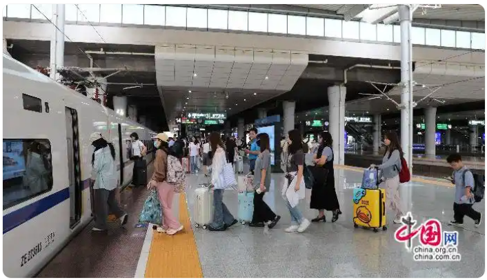 5月30日至6月3日鐵路端午假期運(yùn)輸期間,全國鐵路累計發(fā)送旅客7875.2萬人次,同比增長3.5%,創(chuàng)歷史同期新高,日均開行旅客列車12142列、同比增長9.9%,運(yùn)輸安全平穩(wěn)有序。鐵路客運(yùn)穩(wěn)健增長,展現(xiàn)了交通運(yùn)輸領(lǐng)域的蓬勃發(fā)展,折射出當(dāng)下社會經(jīng)濟(jì)的強(qiáng)勁復(fù)蘇態(tài)勢與民眾生活的滿滿活力。