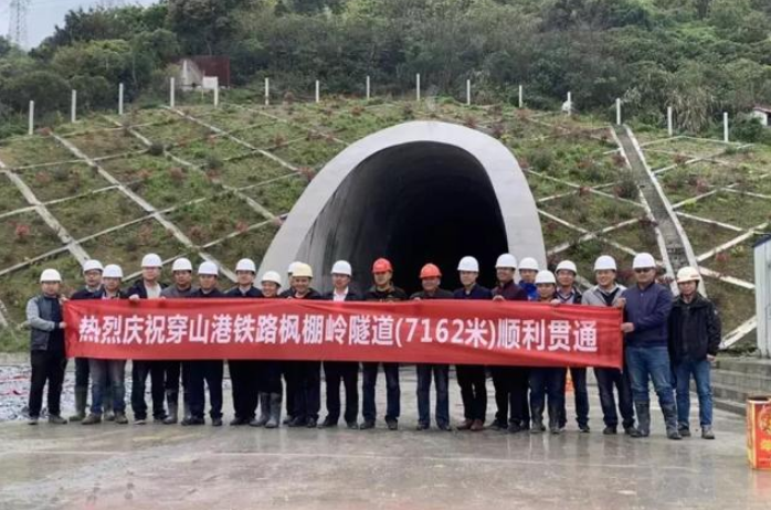 4月10日晚,浙江省重點工程——寧波穿山港鐵路支線項目咽喉工程,最長隧道——楓棚嶺隧道正式貫通,為下一步的供電系統建設和軌道鋪設做好準備。