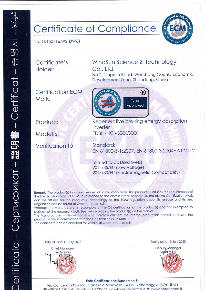 靜止無功發(fā)生器(SVG)歐盟CE證書